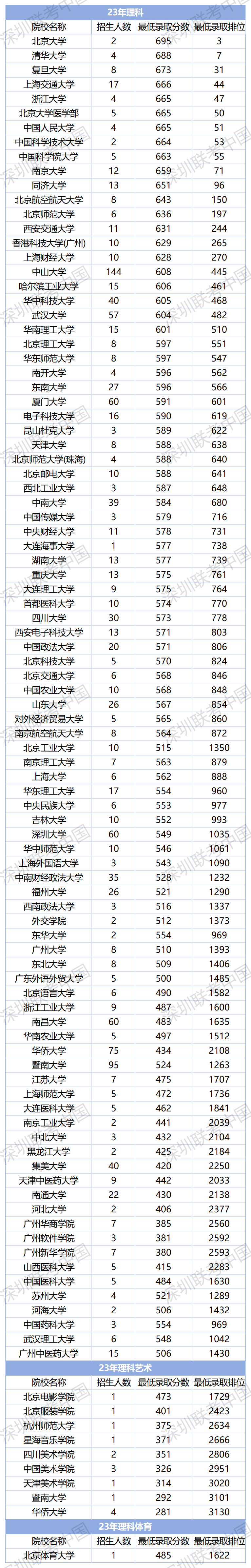 深圳联考中国港澳台联考学校:华侨生联考近三年录取分数线与排位变化情况分享